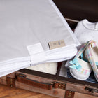 Les excursions et les longues promenades avec un petit enfant peuvent vite devenir mouvementées. Il y a un matelas à langer peu encombrant pour les déplacements afin que vous n'ayez pas à vous passer des belles journées à l'extérieur ou lorsque vous voyagez et que vous soyez toujours bien préparé pour chaque situation. La superposition se compose de quatre couches : coton, toile cirée imperméable, tissu éponge et molleton. Ainsi, votre enfant peut être confortablement et judicieusement rembourré, allongé et changé. Grâce à la fermeture velcro, le coussin de voyage peut être rapidement plié et rangé dans le sac. Le coussin mesure 60 x 60 cm, mais peut également être cousu sur mesure si vous le souhaitez.
